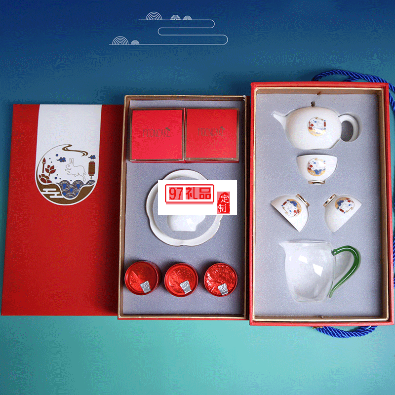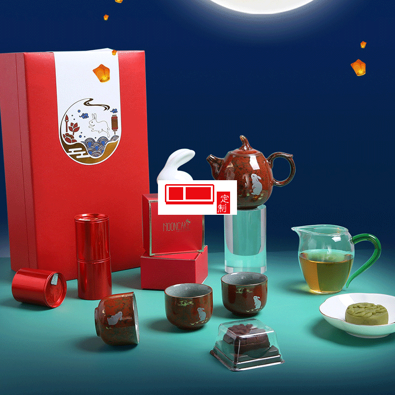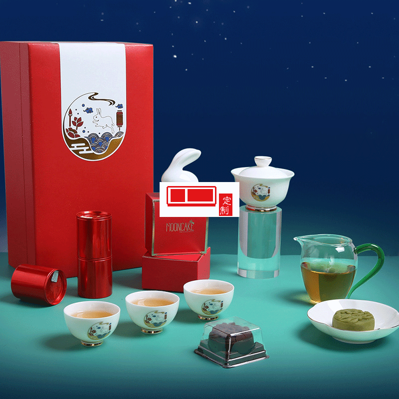 中秋禮品企業(yè)定制logo茶具月餅茶葉伴手禮