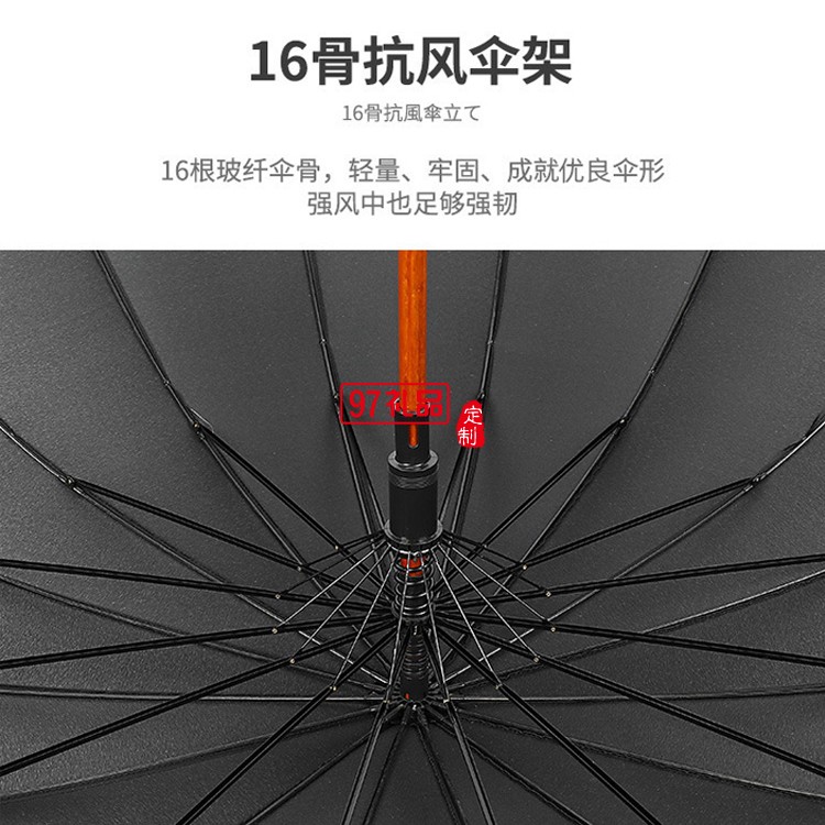 復(fù)古雨傘16骨長柄木桿純色日系簡約直桿傘廣告?zhèn)?