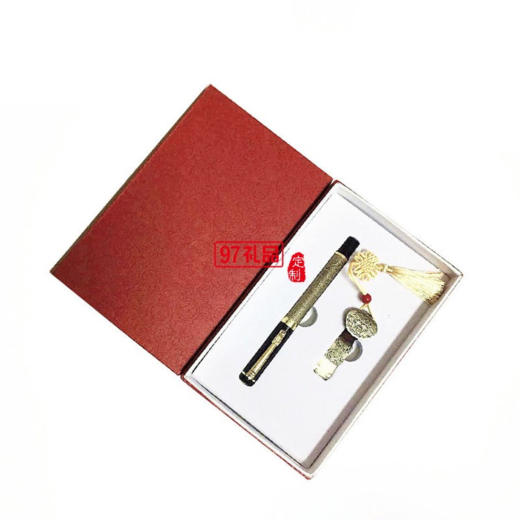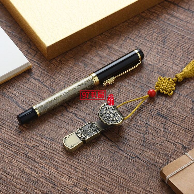 中國(guó)風(fēng)U盤套裝8G16G如意U盤金屬簽字筆鋼筆logo企業(yè)周年禮品定制