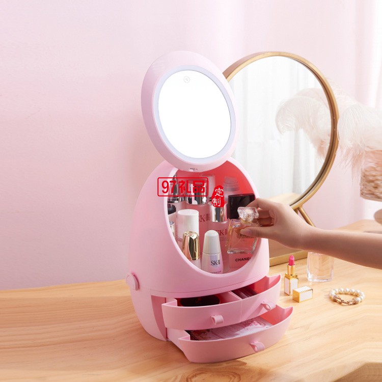 抽屜式化妝品收納盒帶LED鏡子 可定制LOGO定制公司廣告禮品