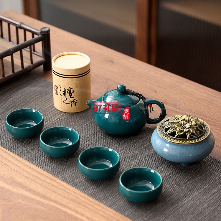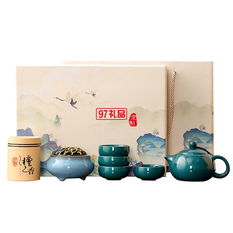 國潮中國風商務(wù)禮品茶具青瓷西施壺1壺4杯香爐檀香組合套裝