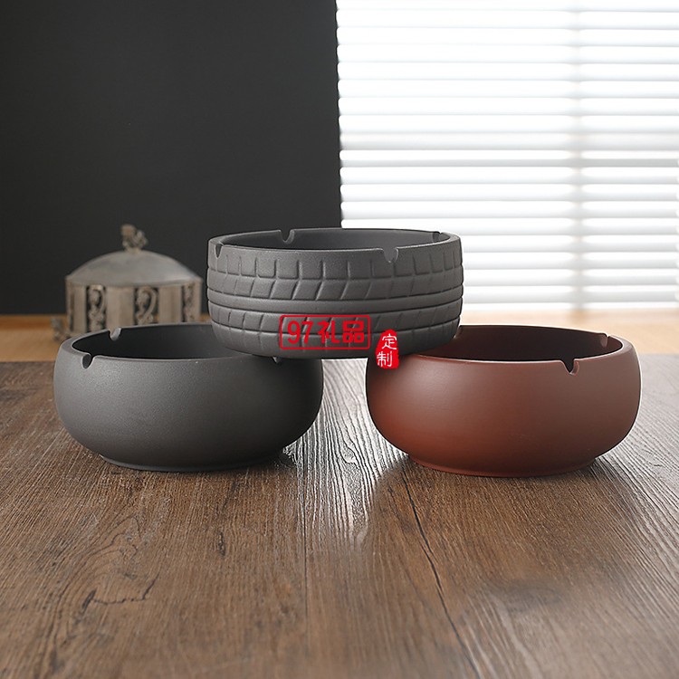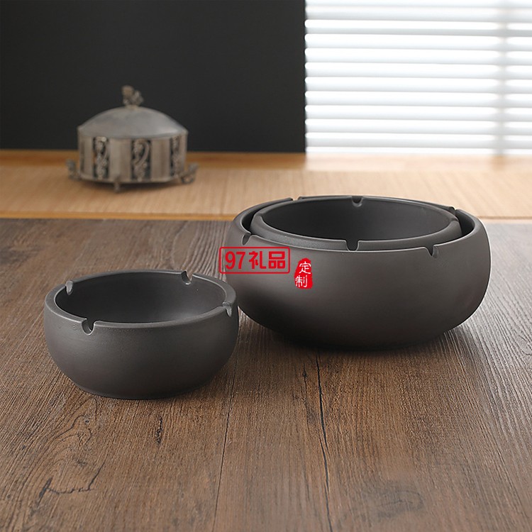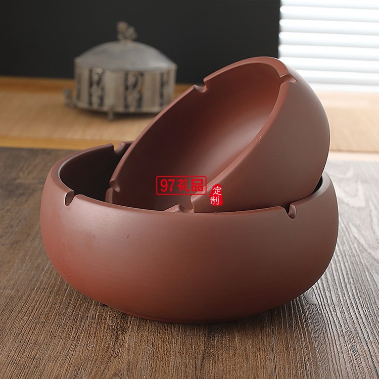 紫砂煙灰缸防風(fēng)家用商務(wù)辦公陶瓷復(fù)古創(chuàng)意煙灰缸可印logo
