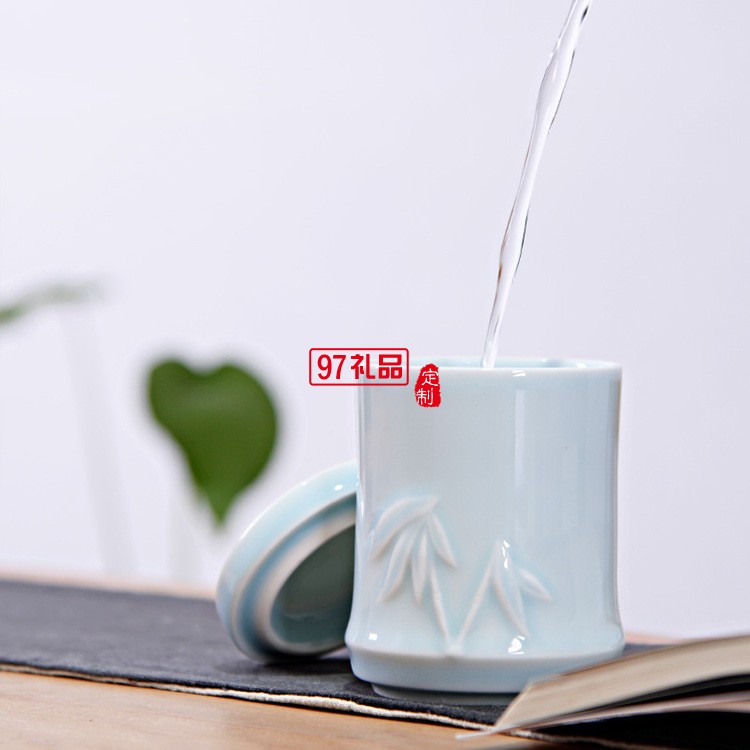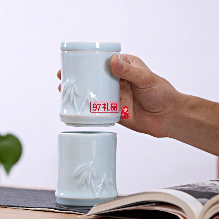 創(chuàng)意竹節(jié)杯陶瓷杯三疊杯定制LOGO