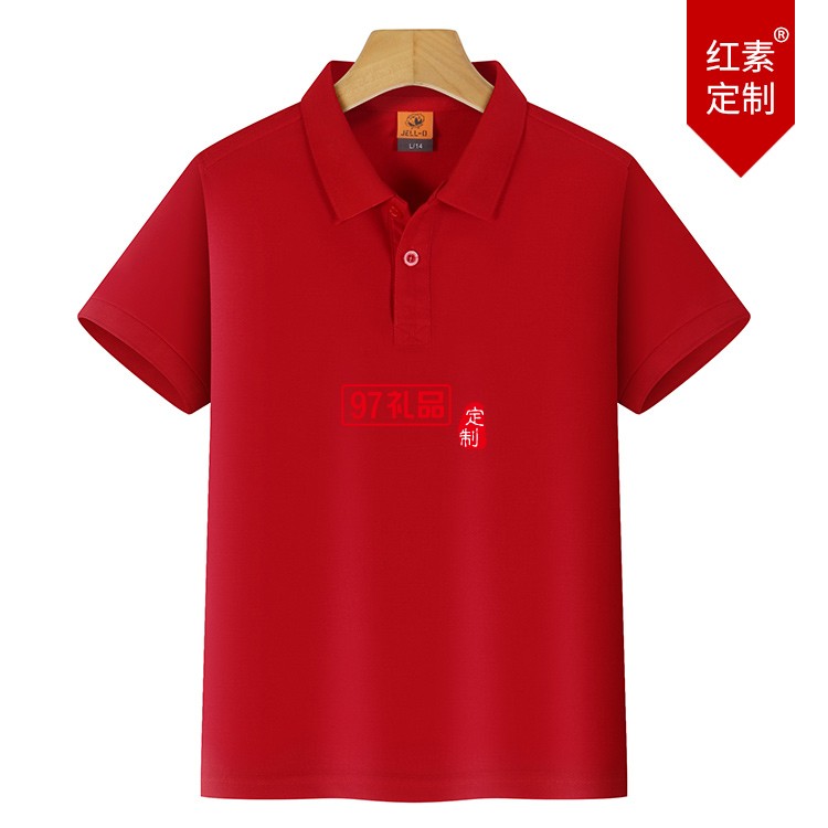 紅素純色翻領兒童款可定制logo定制Polo衫員工服飾廣告衫