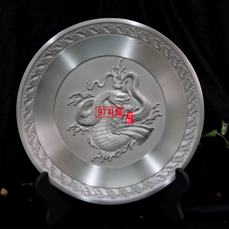 龍騰盛世純錫龍盤金屬龍紋盤純錫紀(jì)念盤 金屬獎盤銀盤金盤刻字