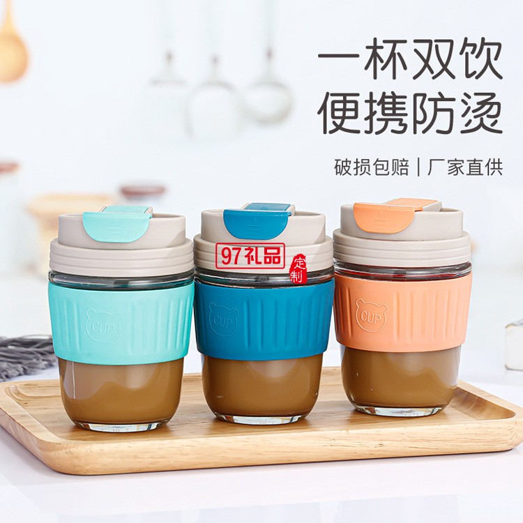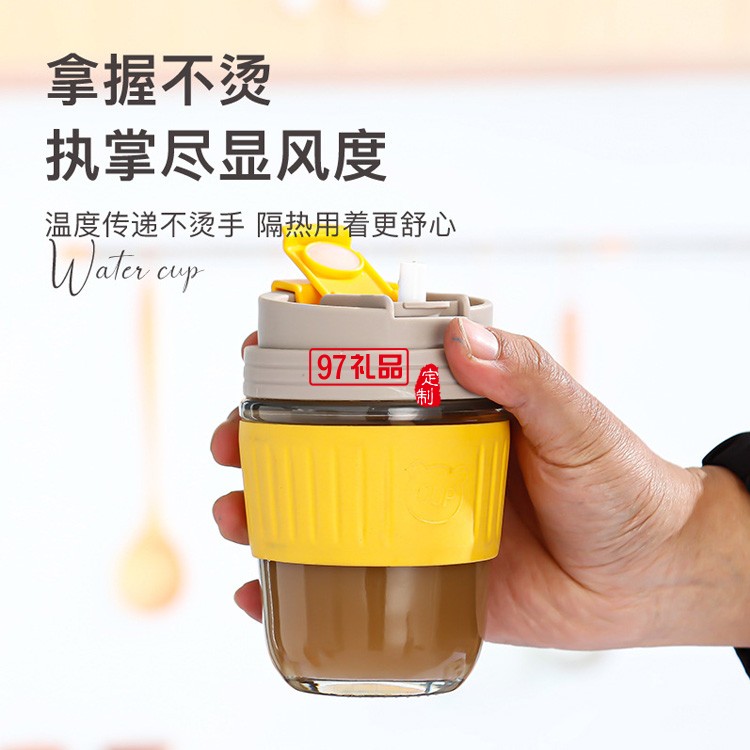 咖啡杯杯子玻璃杯帶蓋吸管杯隨行杯活動(dòng)小禮品定制