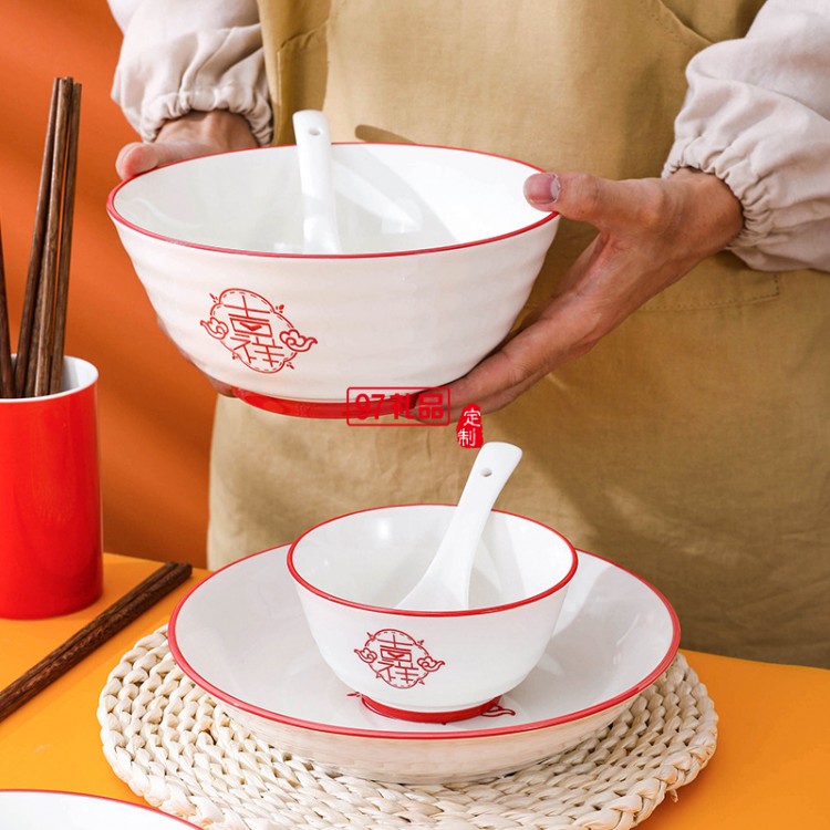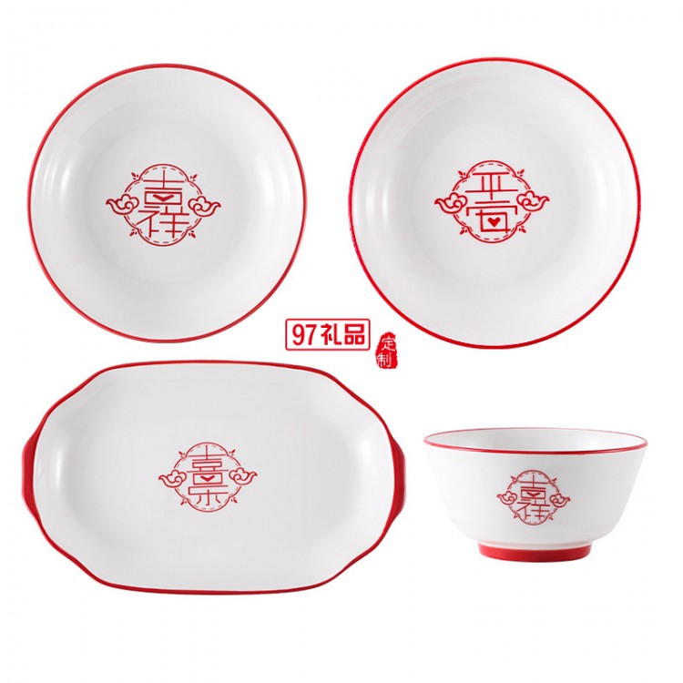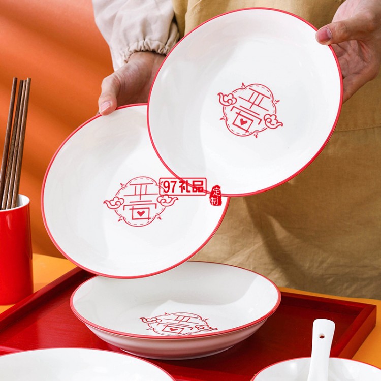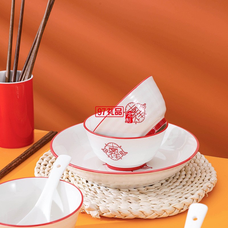 虎年喬遷喜慶餐具陶瓷碗盤(pán)碟套裝家用飯碗魚(yú)盤(pán)大湯碗菜盤(pán)子