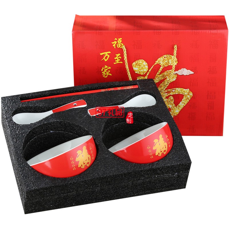 陶瓷福字碗紅色壽碗新年禮品碗虎年碗餐具碗筷定制燒刻字婚慶