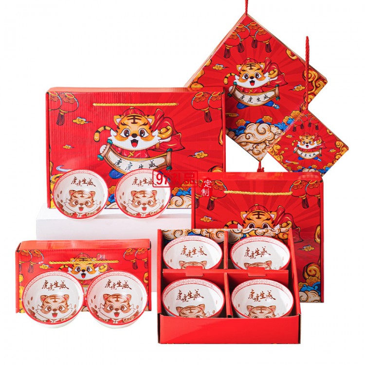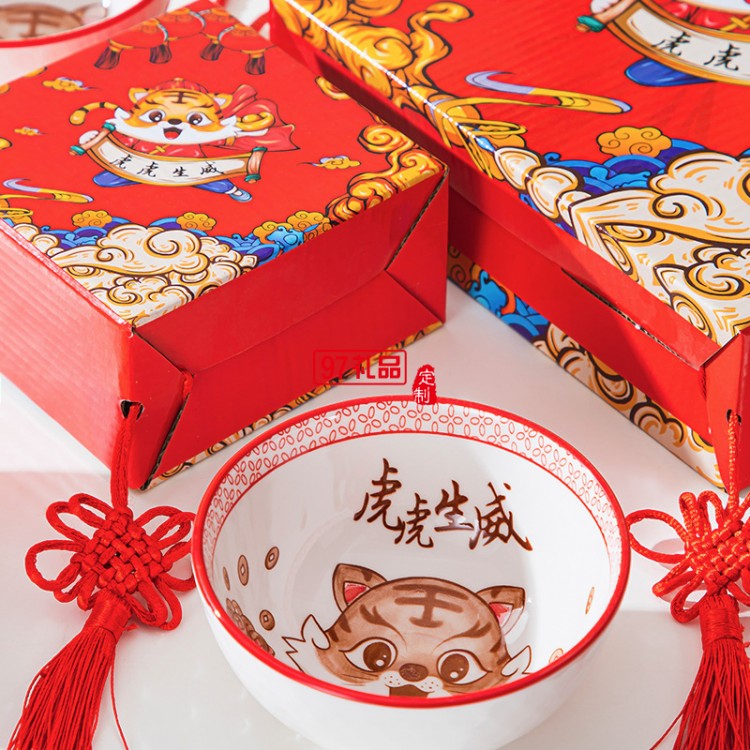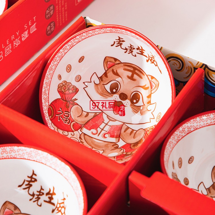 國潮虎虎生威陶瓷碗筷套裝禮盒裝新款虎年餐具禮品碗年會(huì)公司活動(dòng)