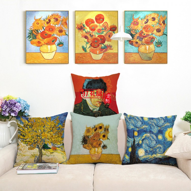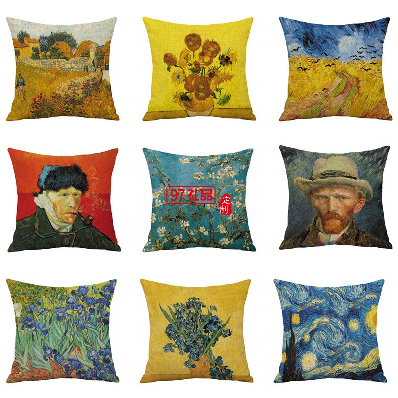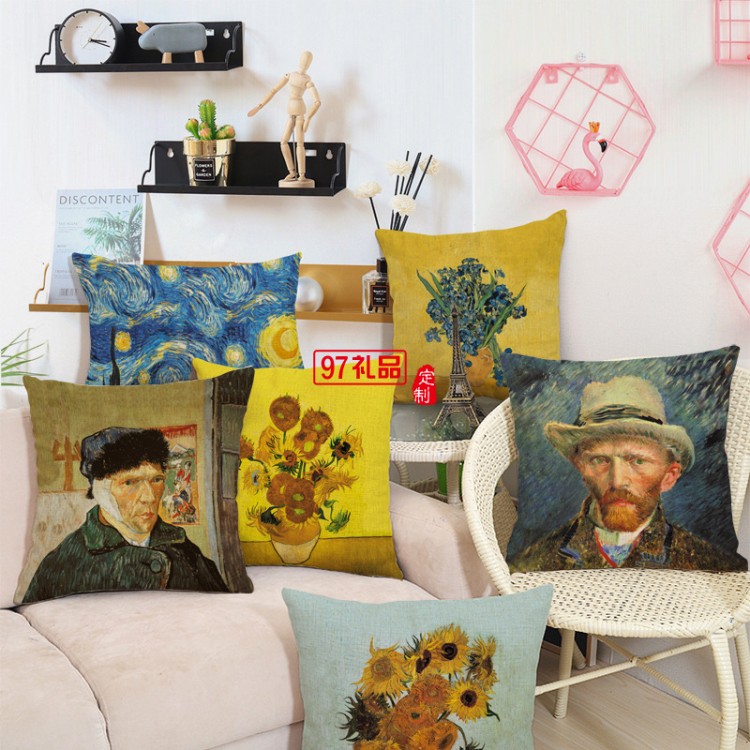 創(chuàng)意梵高油畫印花棉麻抱枕