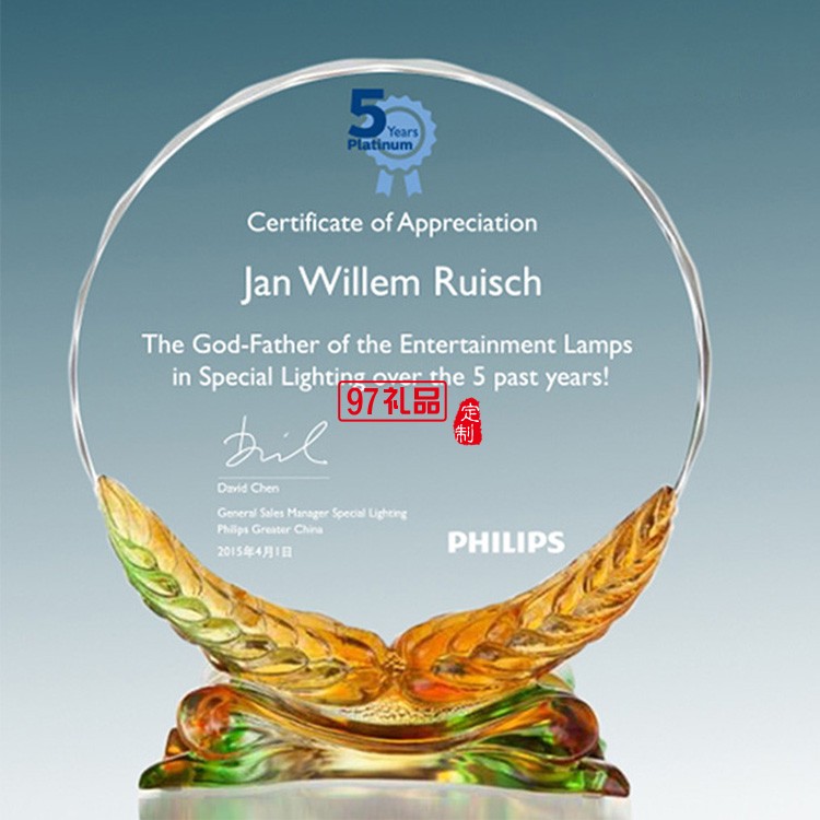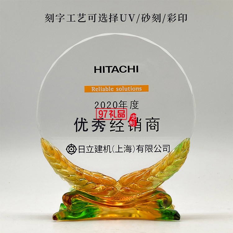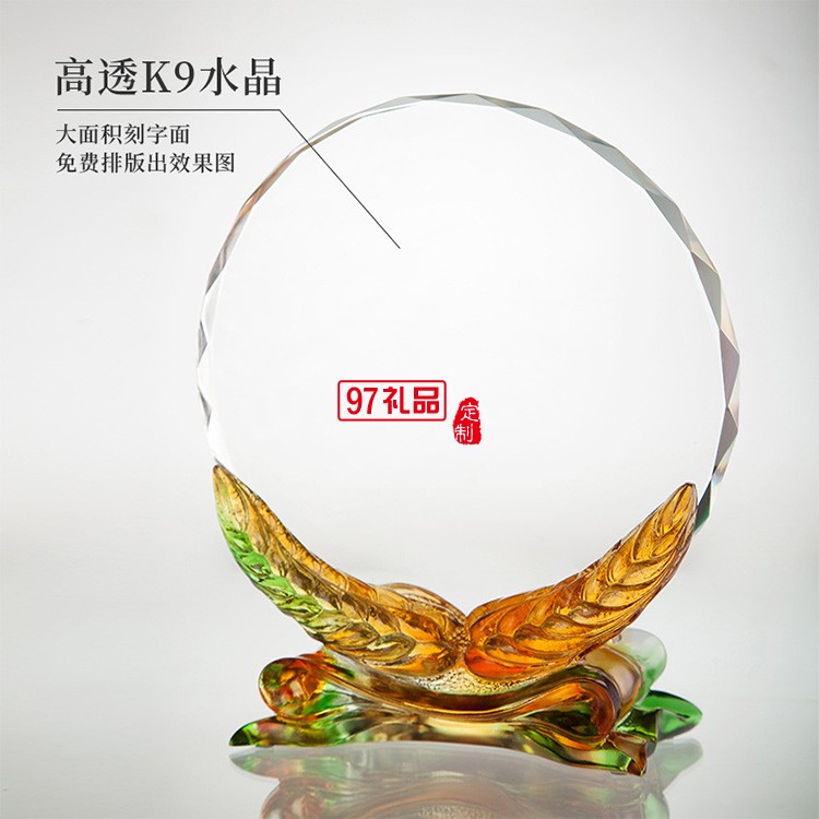 創(chuàng)意豐收麥穗水晶琉璃獎牌企業(yè)周年禮品定制