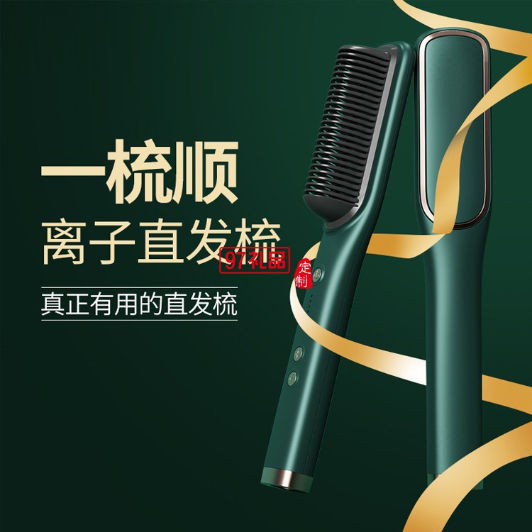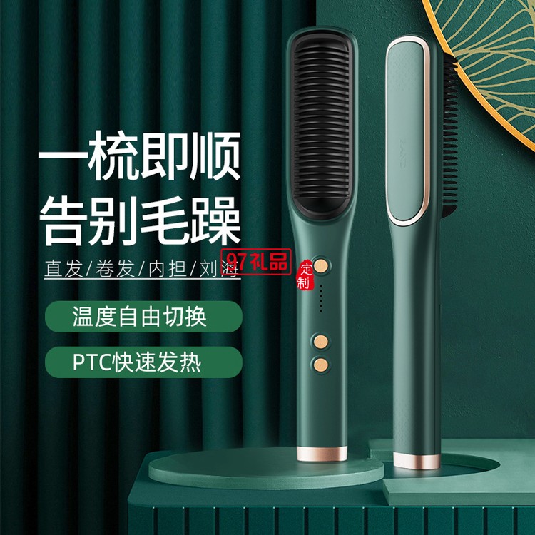 直發(fā)梳負(fù)離子直發(fā)器直發(fā)卷發(fā)兩用電卷發(fā)梳定制公司廣告禮品