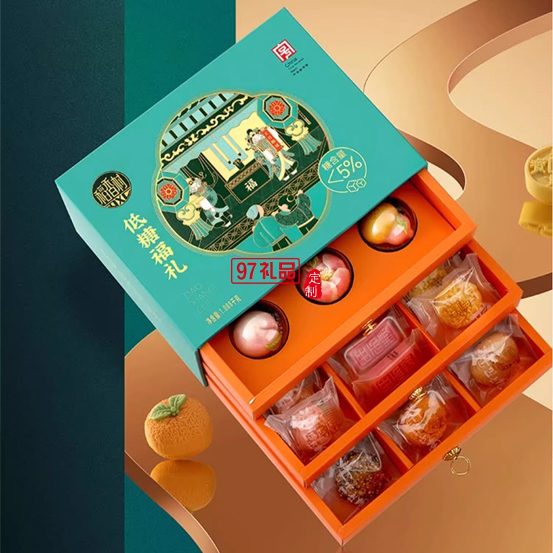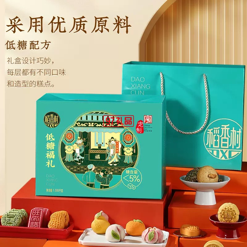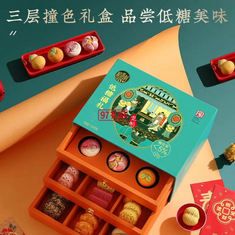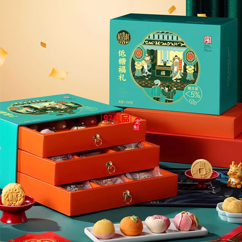 稻香村月餅低糖福禮新中式三層糕點(diǎn)禮盒裝