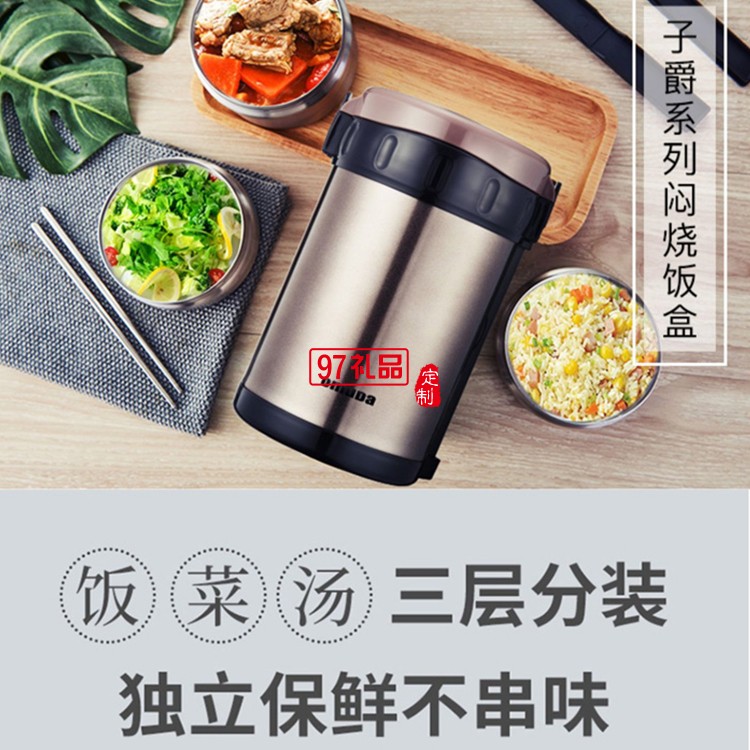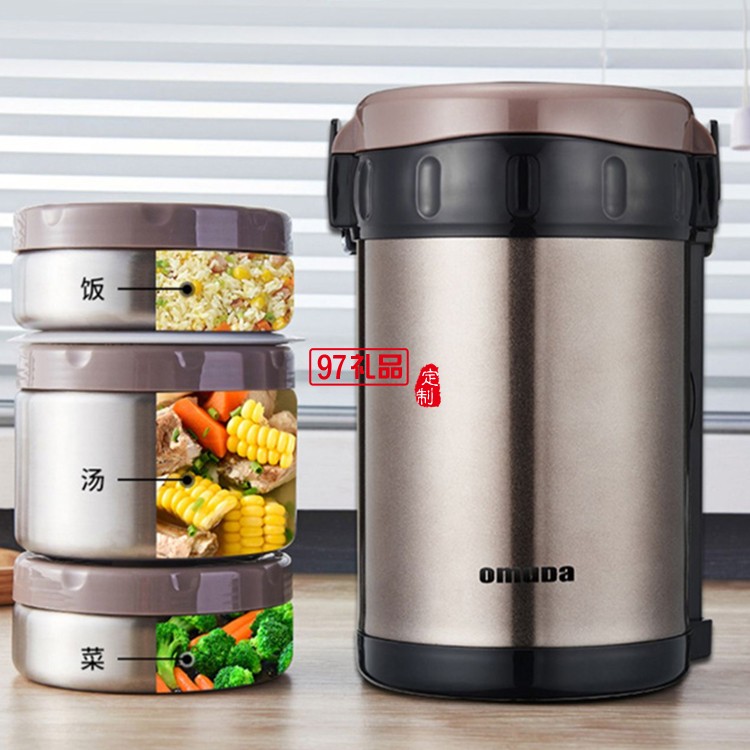 歐美達(dá)保溫飯盒304不銹鋼真空飯盒 3層保溫桶定制公司廣告禮品