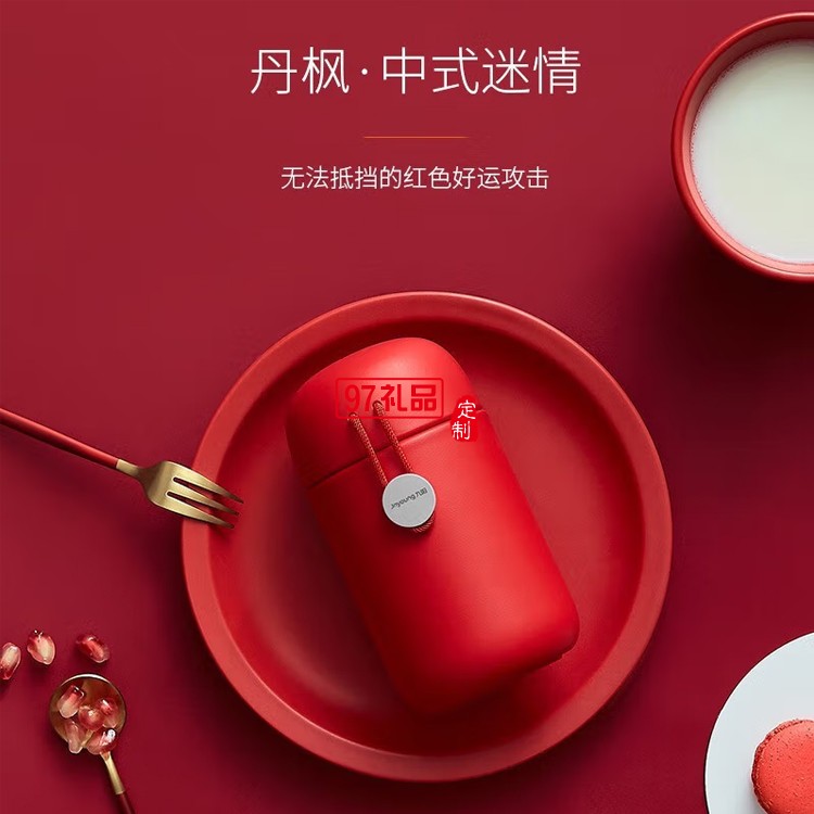 九陽(yáng)小紅繩保溫杯316不銹鋼圓筒水杯B32V8D定制公司廣告禮品