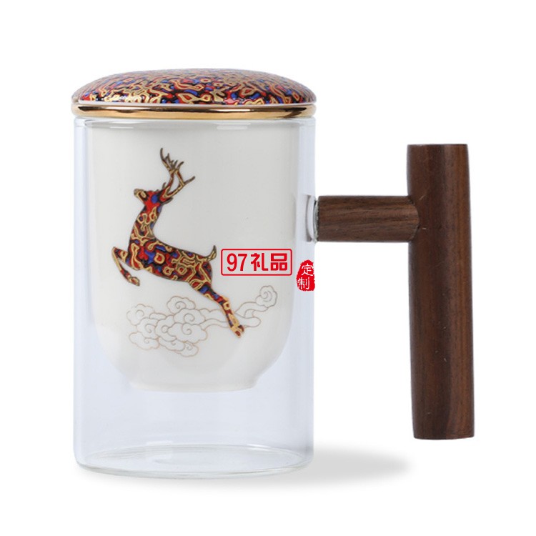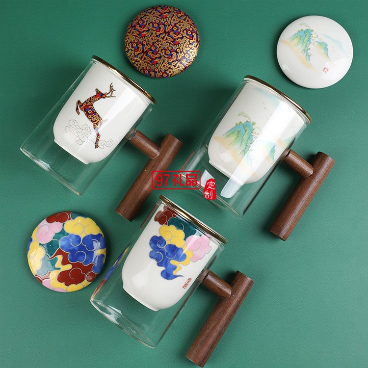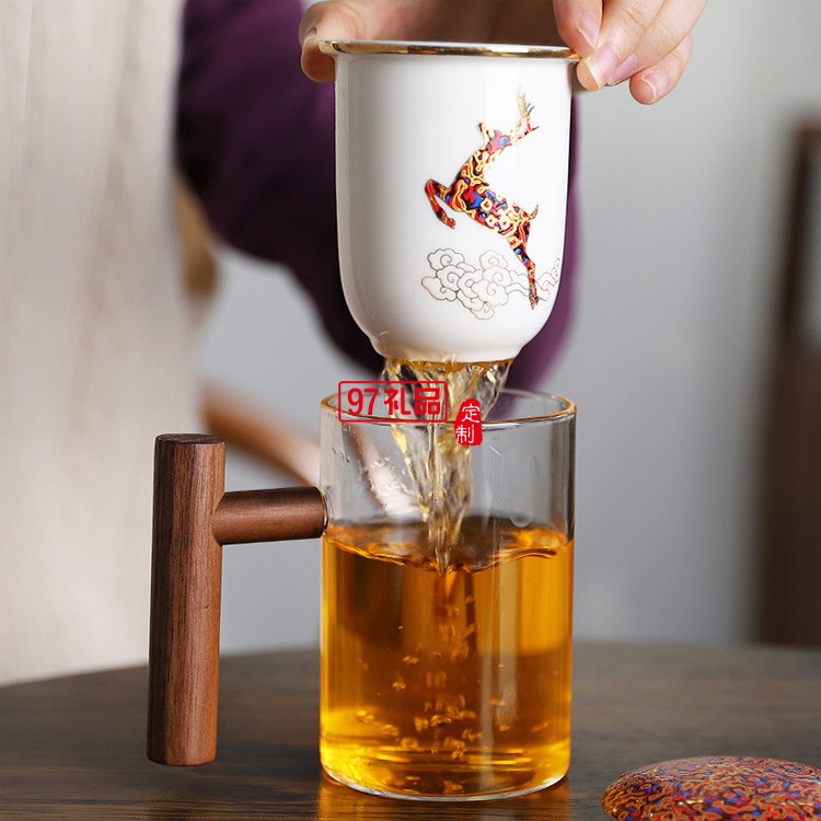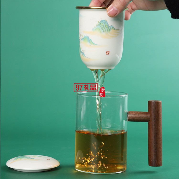 創(chuàng)意耐熱玻璃杯水杯馬克杯陶瓷內(nèi)膽過濾辦公杯茶杯木手柄泡茶杯