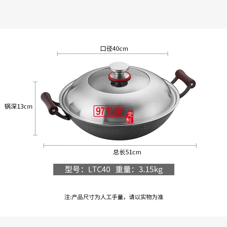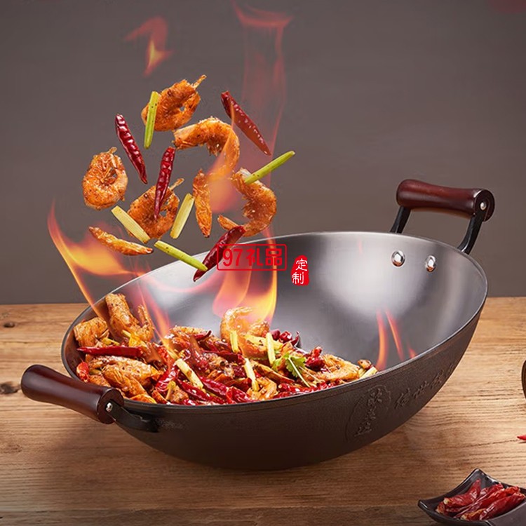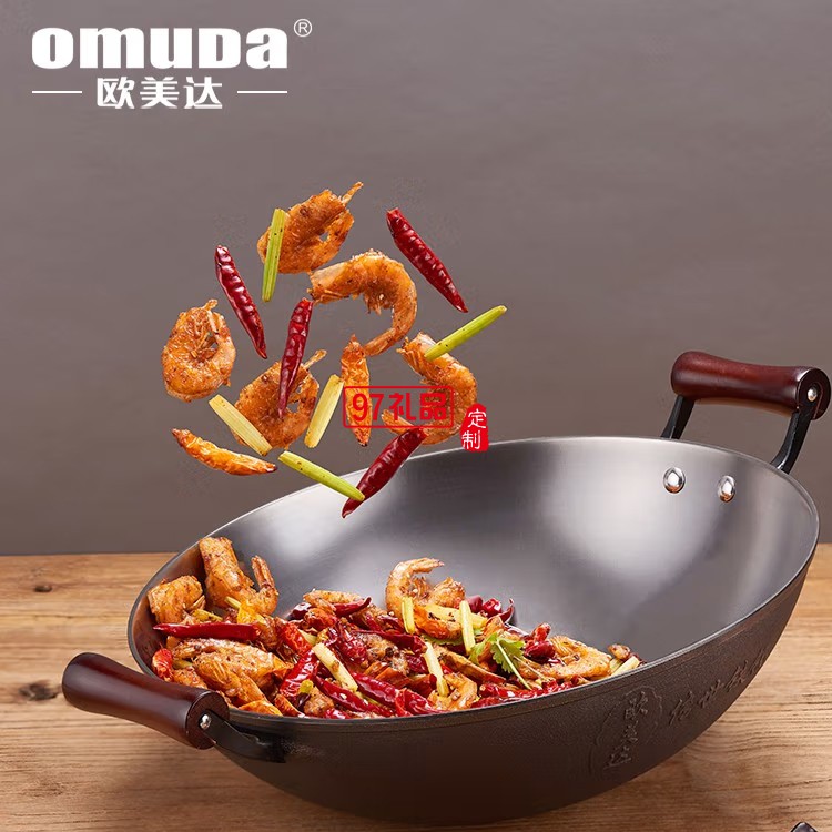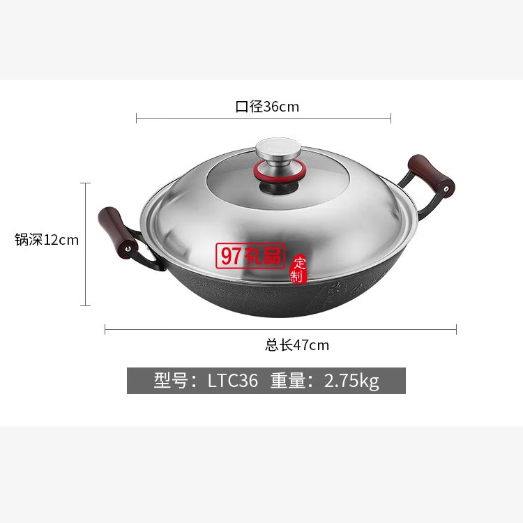 歐美達鐵鍋老式雙耳不粘炒鍋炒菜鍋 LTC36 36cm定制公司廣告禮品