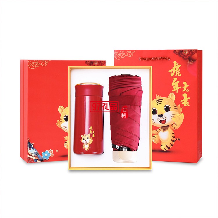 虎年創(chuàng)意開門紅會議活動員工福利保溫杯送客戶禮品定制