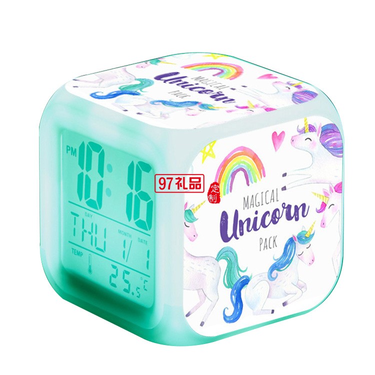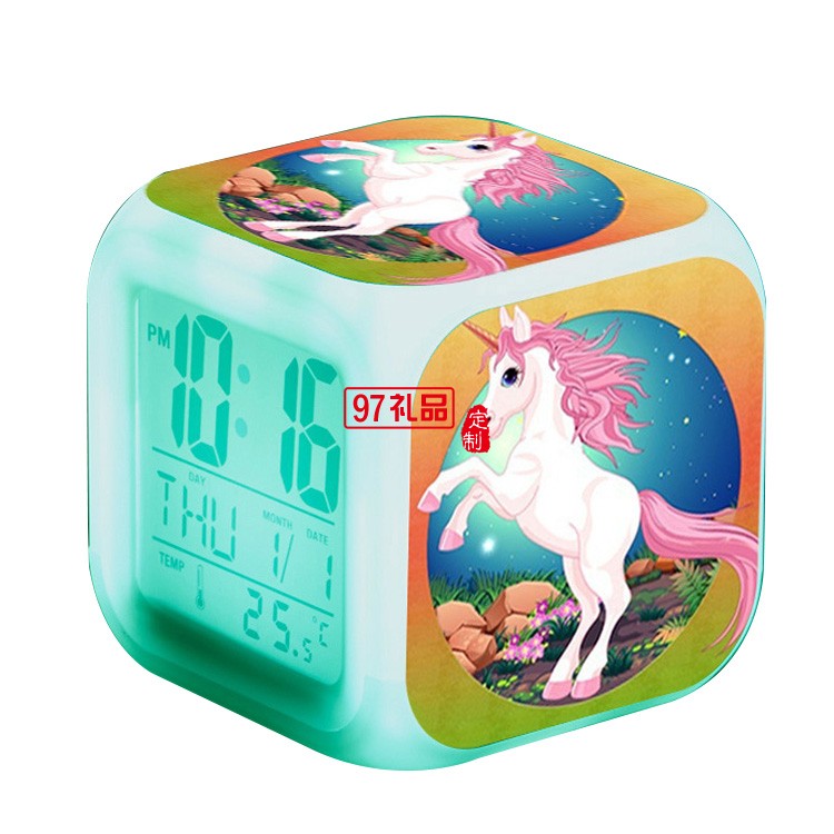 獨(dú)角獸七彩四方鬧鐘 創(chuàng)意小鬧鐘 學(xué)生兒童小禮品