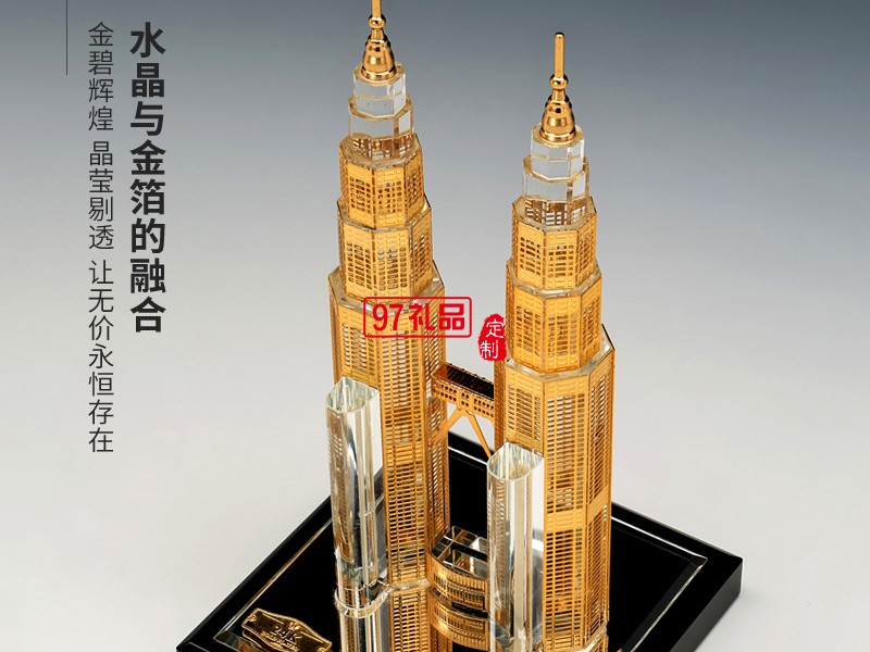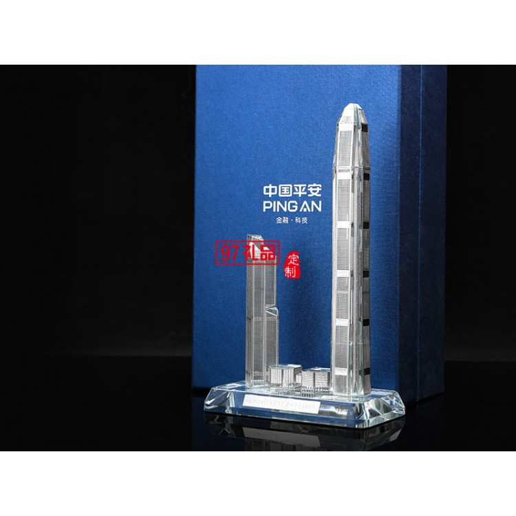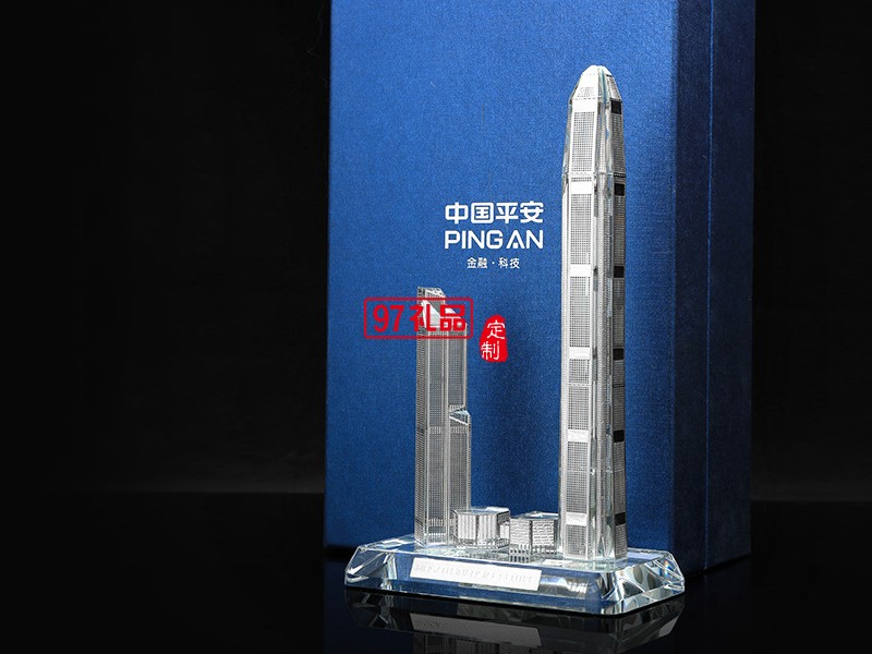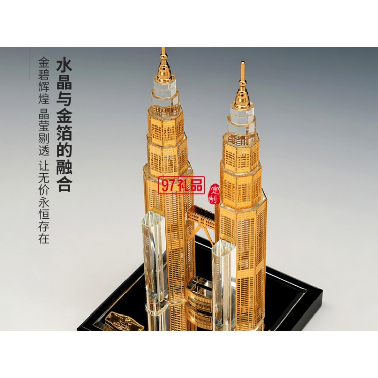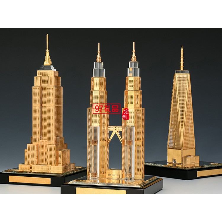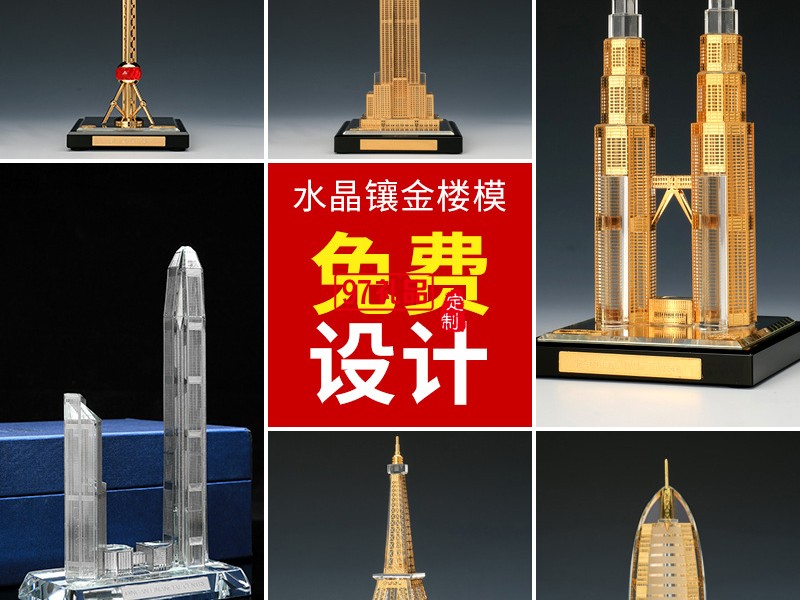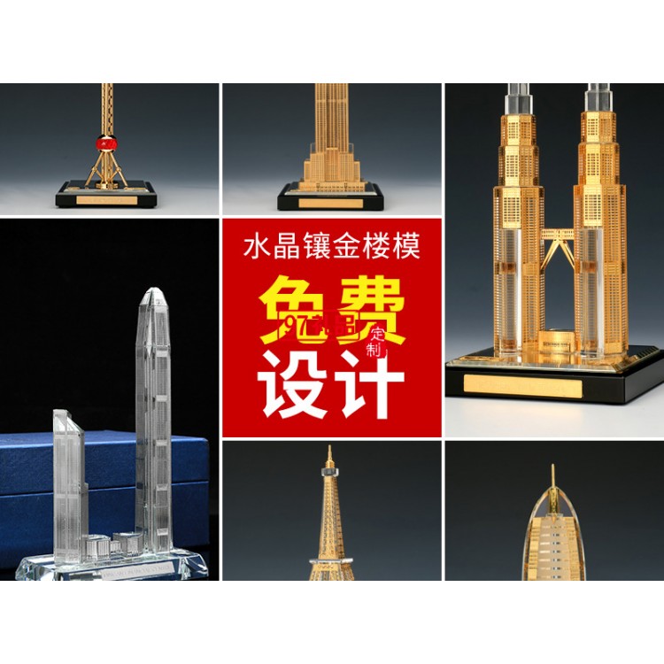 鍍金水晶內(nèi)雕收藏品3D建筑樓模創(chuàng)意定制