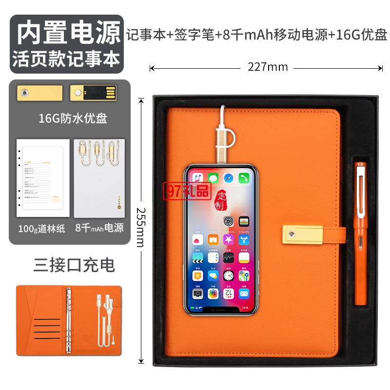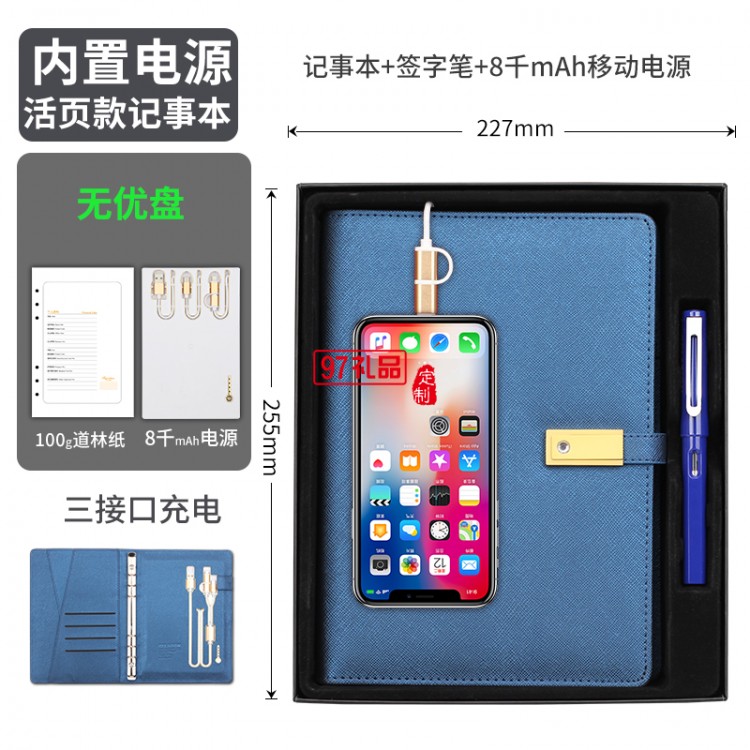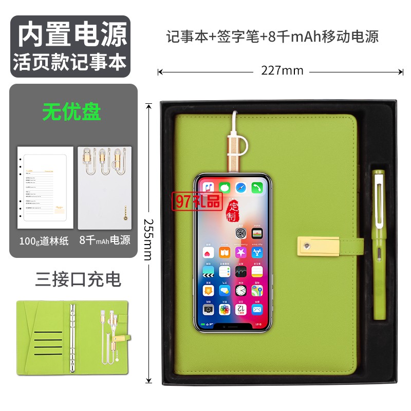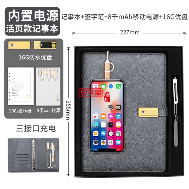 (金扣本)A5多功能充電筆記本印LOGO套裝高檔商務(wù)禮品定制