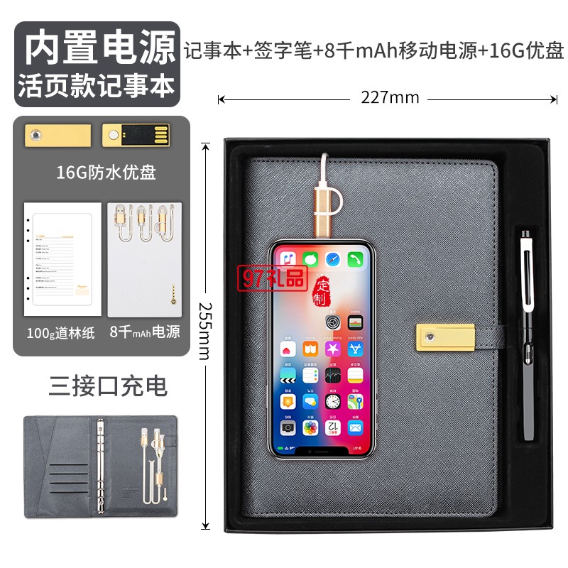 A5多功能電源筆記本+16G U盤+禮盒包裝+簽字筆