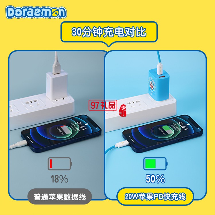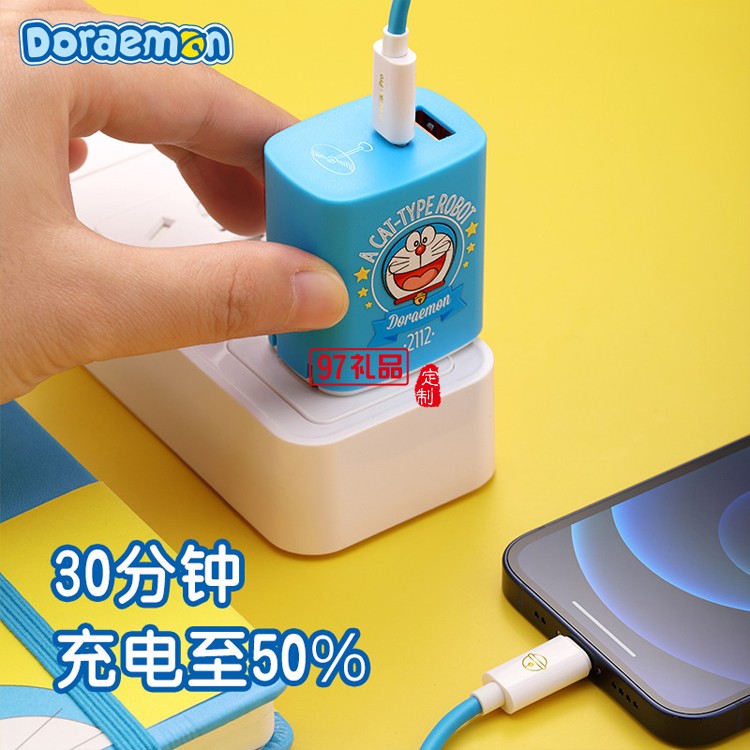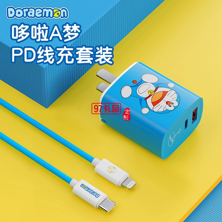 哆啦A夢(mèng) 數(shù)據(jù)線+雙口20W快充充電器定制公司廣告禮品