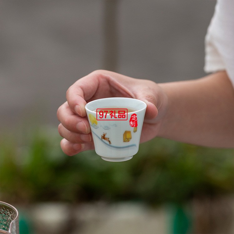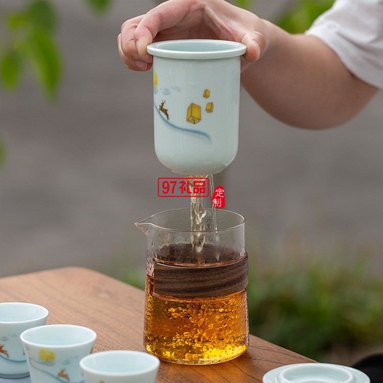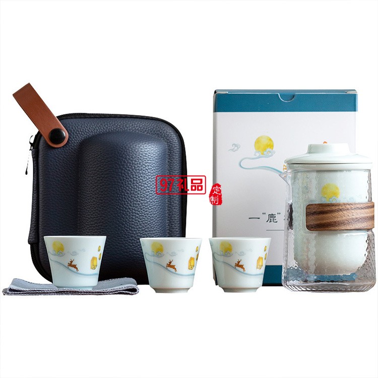 一鹿相伴快客杯青瓷茶具套裝便攜式旅行包簡約泡茶器logo定制