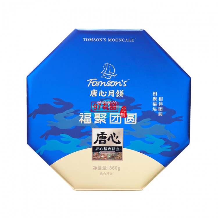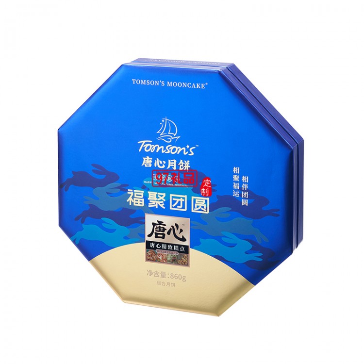 唐心福聚團圓月餅禮盒裝860g中秋送禮蛋黃蓮蓉月餅紅豆沙月餅