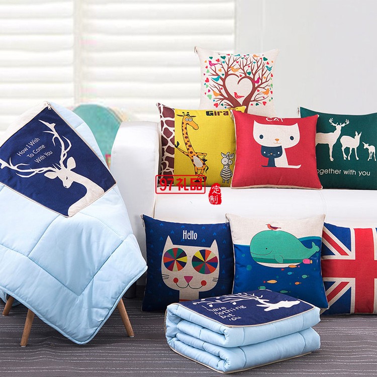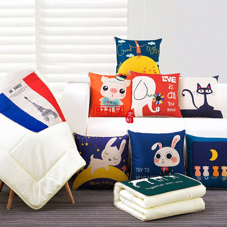 滿版印刷棉麻抱枕被,定制企業(yè)logo