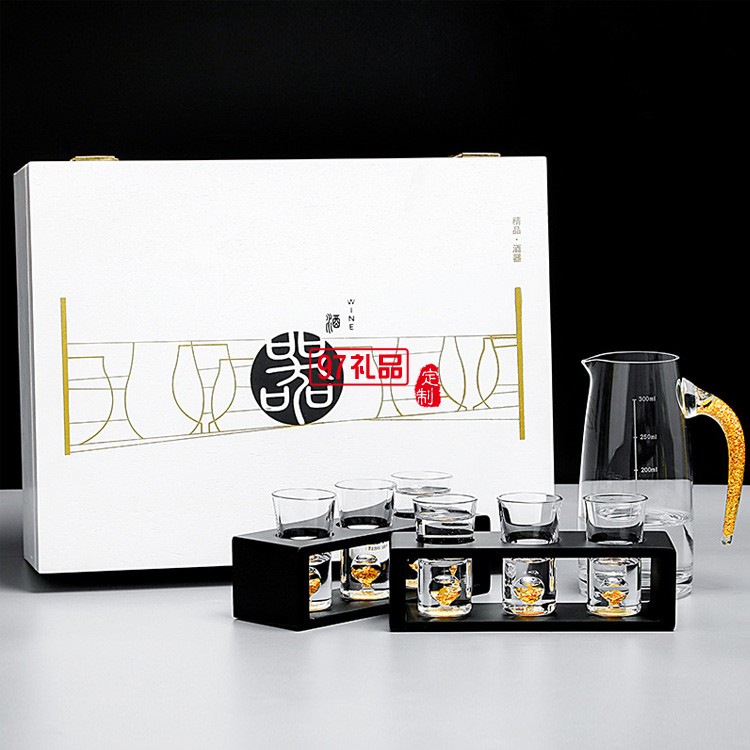 分酒器 水晶玻璃茅臺小酒杯 創(chuàng)意金箔烈酒杯酒壺酒具禮盒套裝