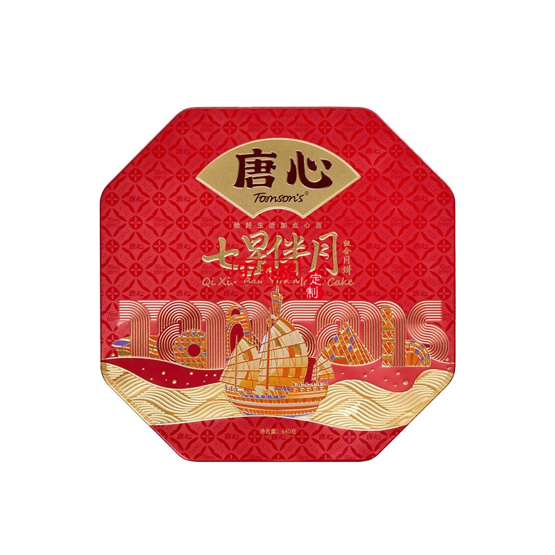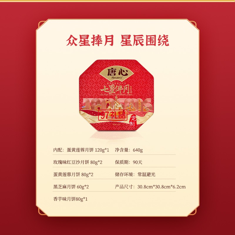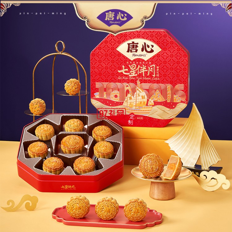 唐心七星伴月廣式金沙蛋黃蓮蓉禮盒裝月餅640g中秋團購批發(fā)