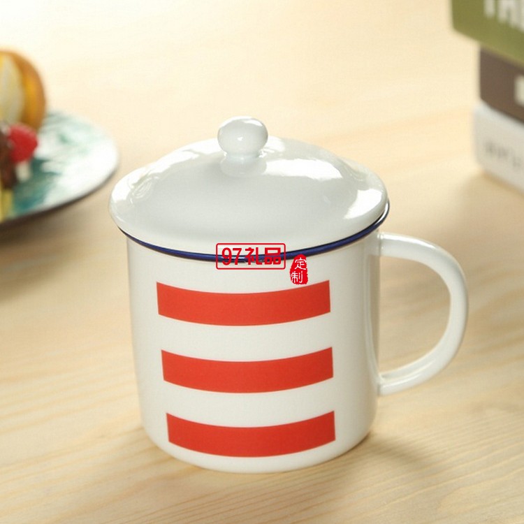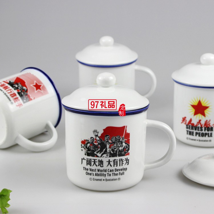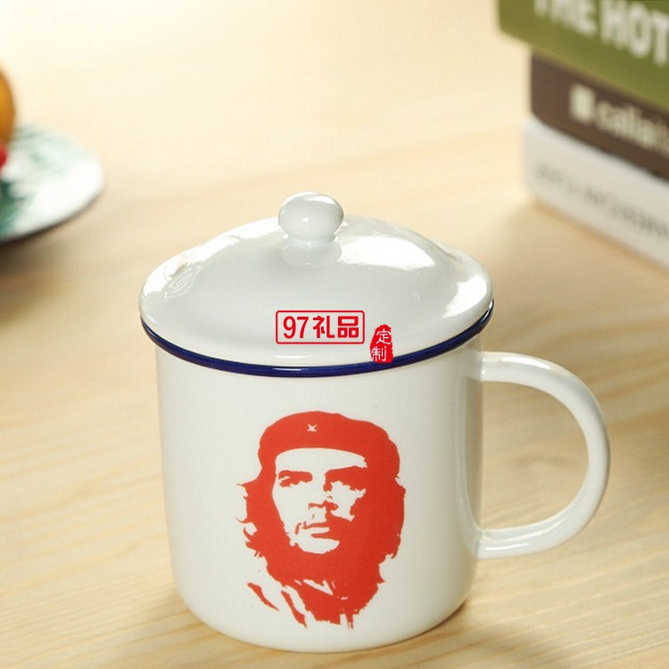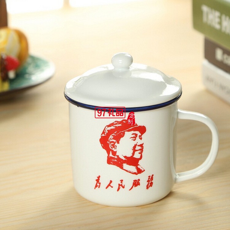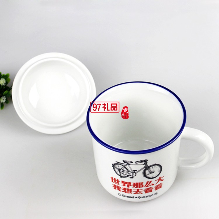 陶瓷杯 懷舊復(fù)古仿搪瓷杯 帶蓋馬克杯 陶瓷水杯 80后語錄水杯