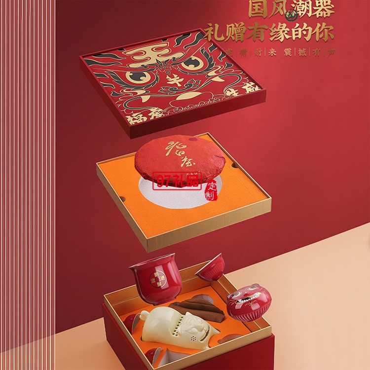 ?;⑸?chuàng)意國(guó)潮虎年新年送禮商務(wù)陶瓷旅行茶具套裝隨手禮品整套