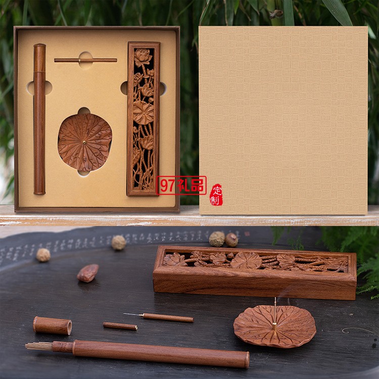 非洲酸枝木精雕鏤空浮雕荷韻香盒