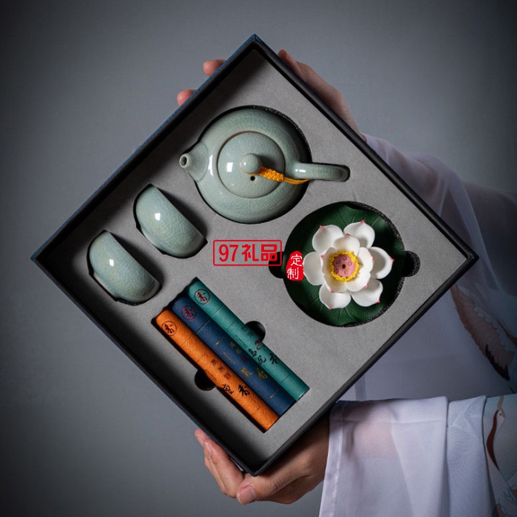 復(fù)古商務(wù)蓮花茶具商務(wù)組合周年慶客戶回饋員工福利禮品 可定制logo