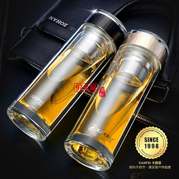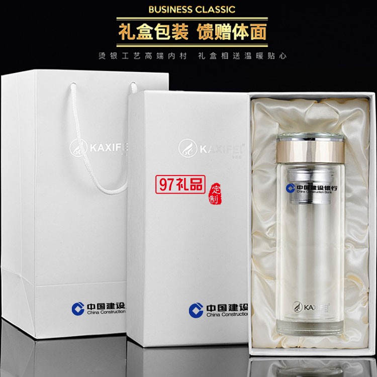 中國(guó)建設(shè)銀行定制雙層玻璃杯隔熱過(guò)濾茶杯高檔商務(wù)水晶杯