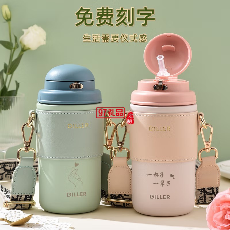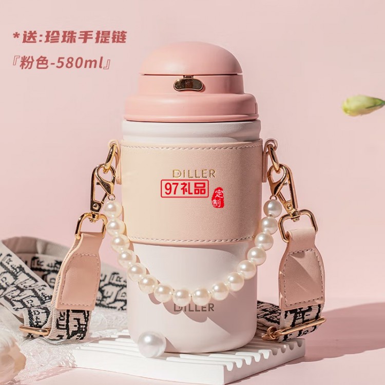 迪樂貝爾高顏值大容量帶吸管保溫水杯學(xué)生便攜隨手杯不銹鋼咖啡杯