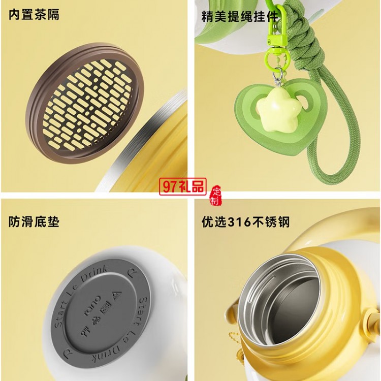 316不銹鋼,適用于各種飲料:杯蓋創(chuàng)意組合,“嘀嗒”按壓出水;7層鎖溫工藝,高效保溫6小時,保冷長達(dá)24小時;一壺多用,適合燜泡養(yǎng)生花茶、熱咖、冷飲等飲品。
