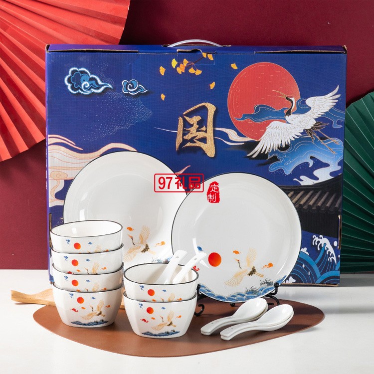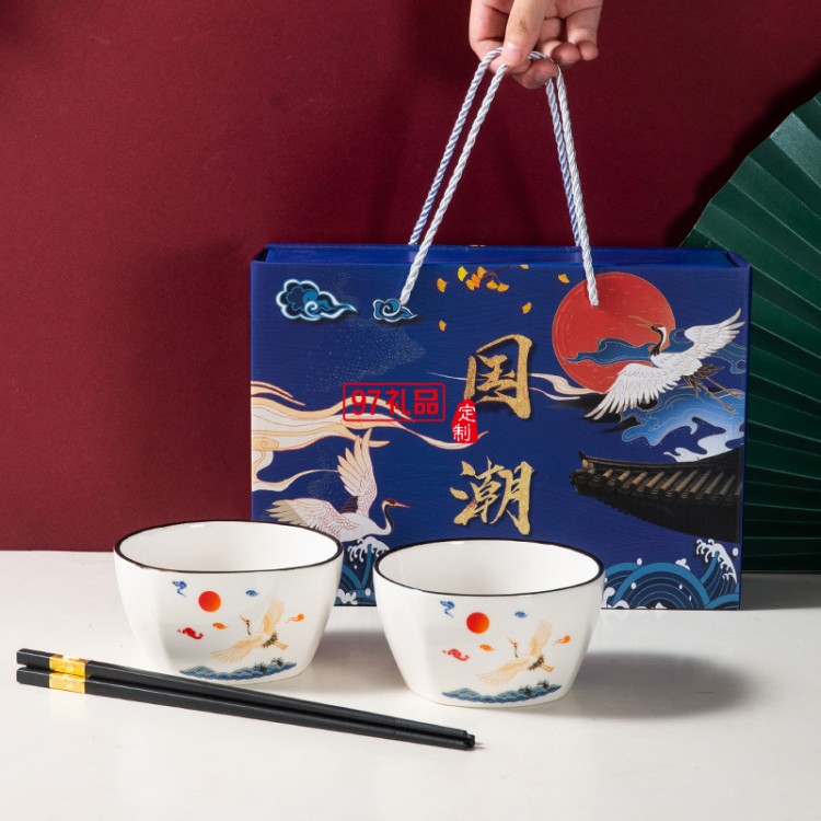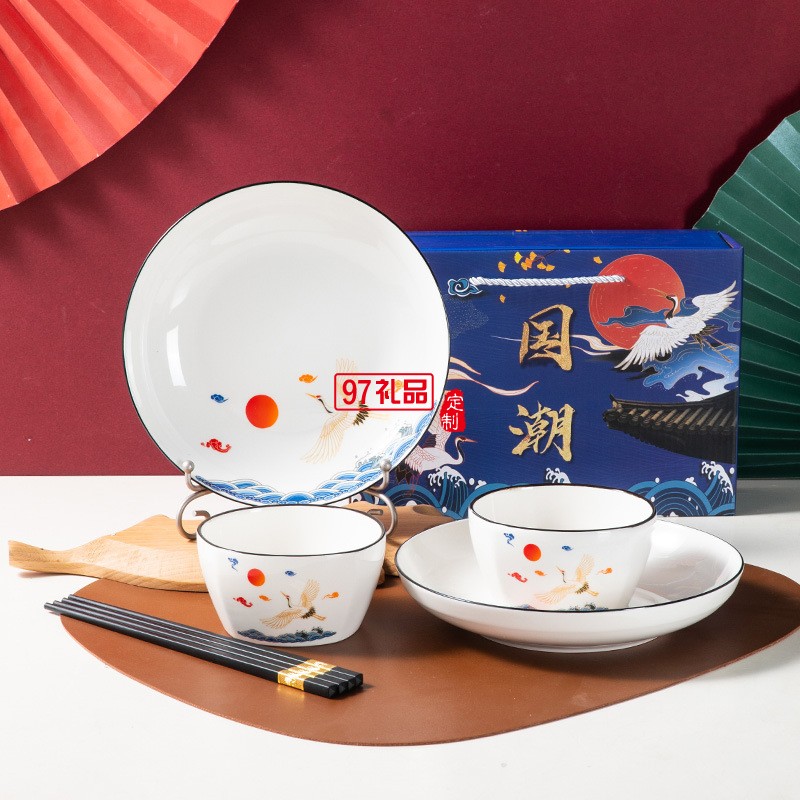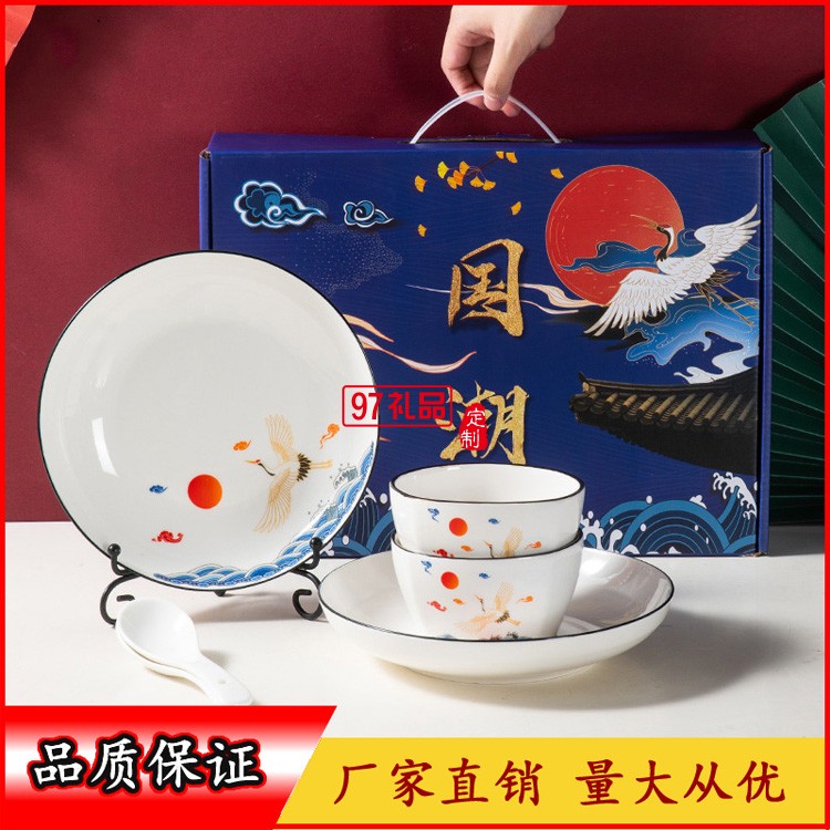 陶瓷碗套裝碗筷碗勺套裝餐具禮盒套碗開業(yè)活動(dòng)禮品LOGO