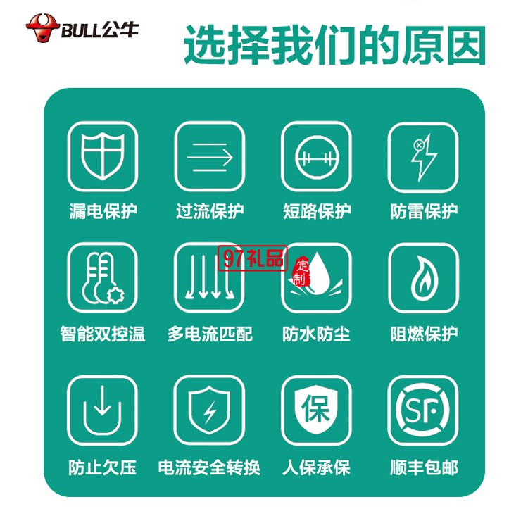 公牛充電槍電動汽車通用特斯拉充電器 D2-A16B定制公司廣告禮品
