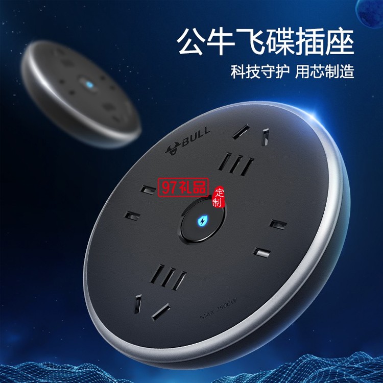 公牛飛碟插座接線板多功能宿舍多孔智能排插R6220定制公司廣告禮品