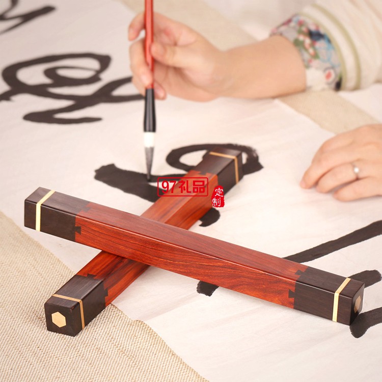 中國風創(chuàng)意禮品文房四寶套裝復古黑檀木質鎮(zhèn)尺