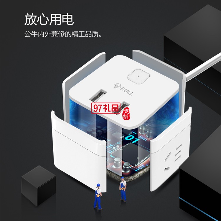 公牛魔方插座充電插排接線板多功能1.5米UUB122定制公司廣告禮品