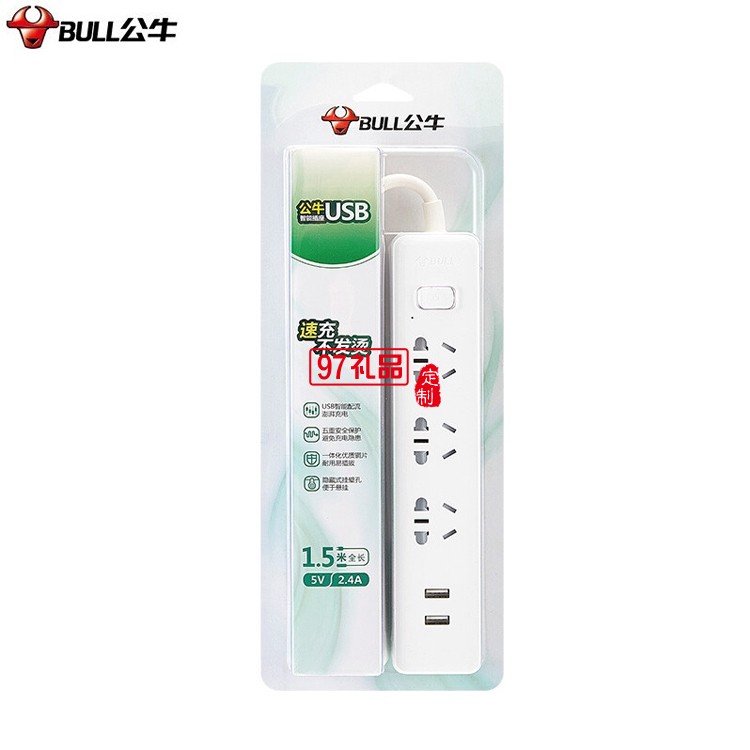 公牛插座插線板插排排插長1.5米GNV-UUA123X定制公司廣告禮品