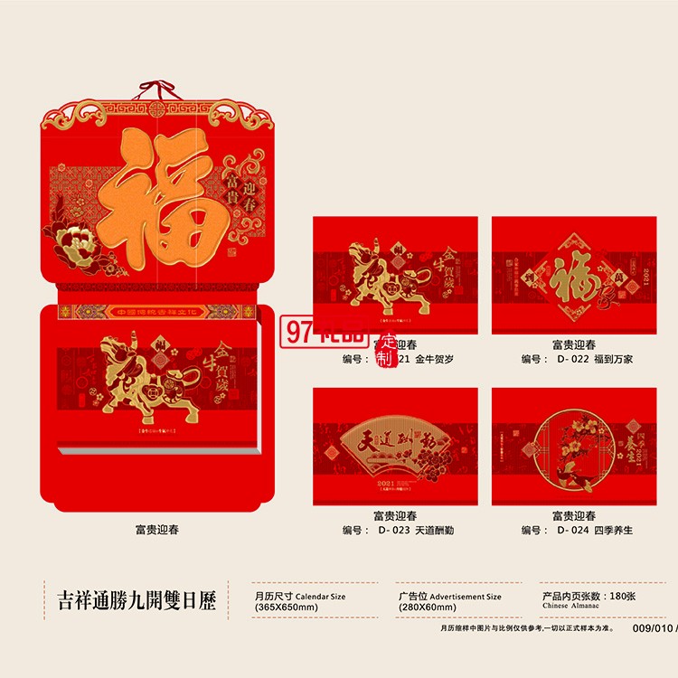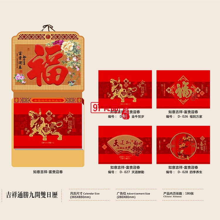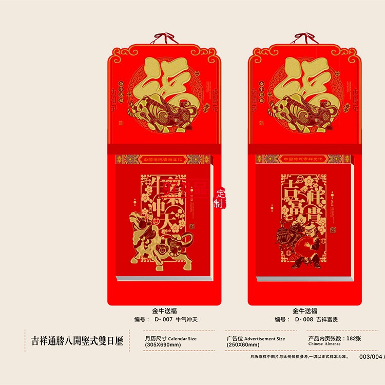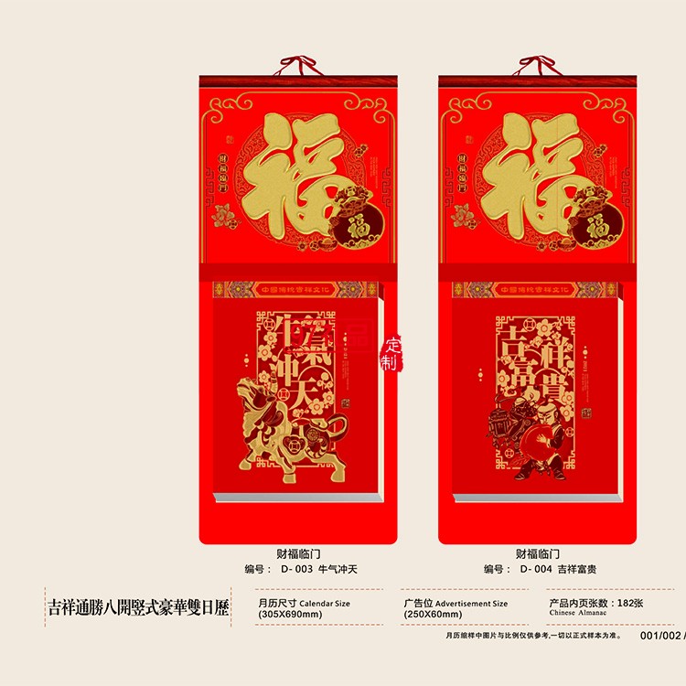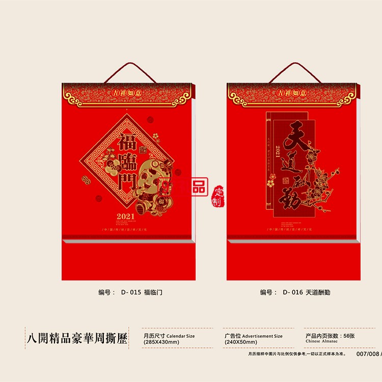 掛歷日歷公司保險(xiǎn)禮品日歷月歷大號(hào)福字萬年歷廣告禮品定制