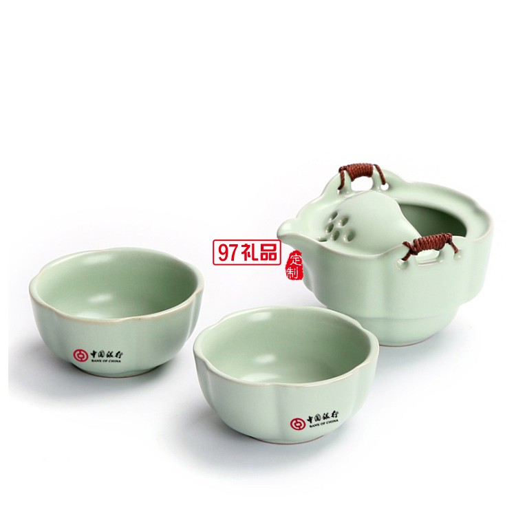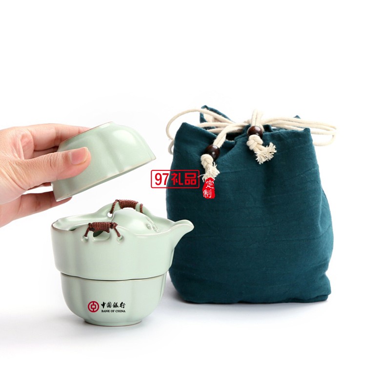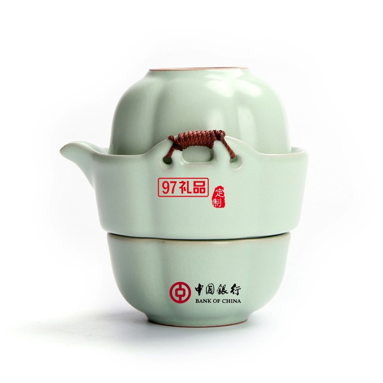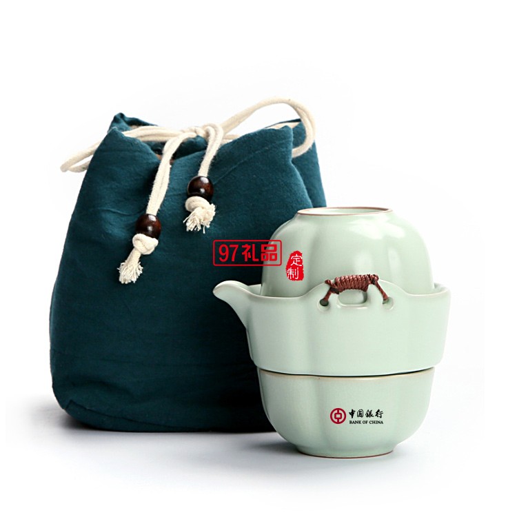 中國(guó)銀行定制 功夫茶具便攜式汝窯快客杯一壺一杯 可定制LOGO