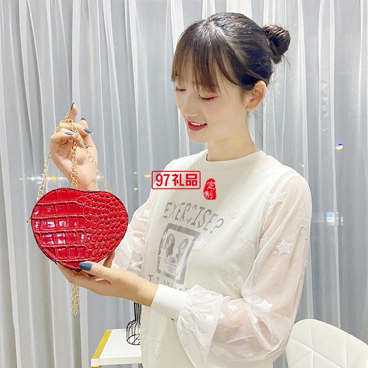 新款鱷魚(yú)紋心形鏈條斜挎口紅包迷你果凍色小包外貿(mào)禮品包