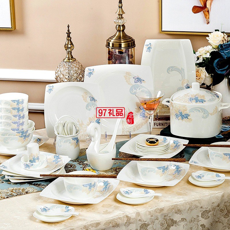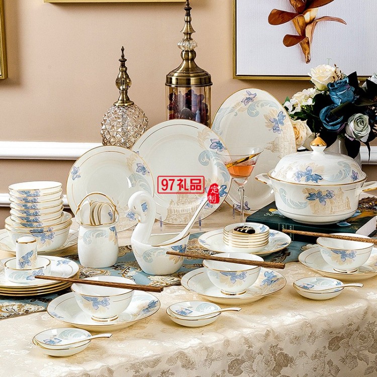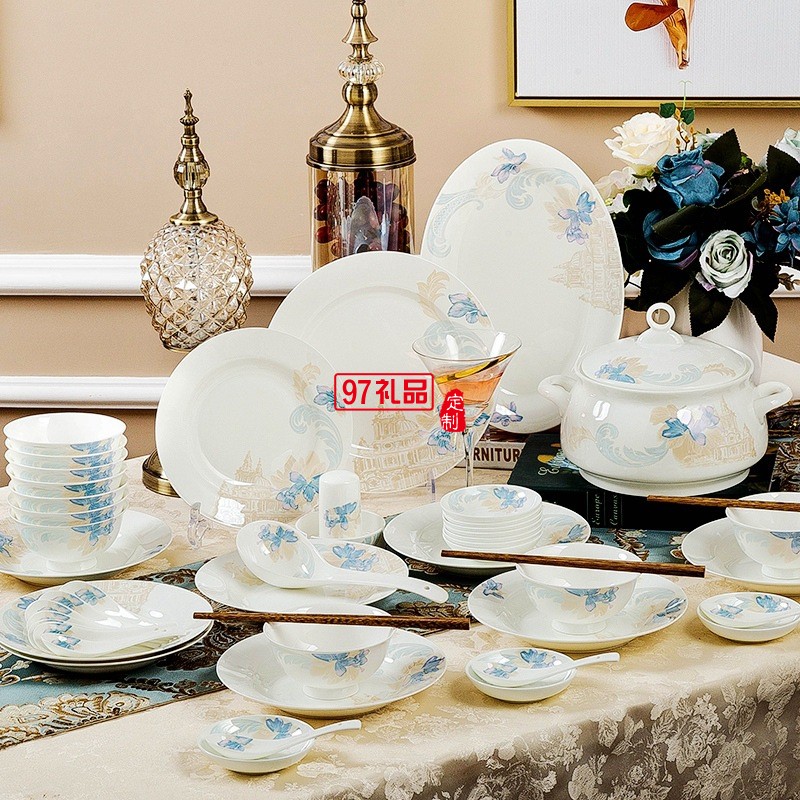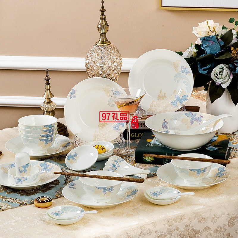 景德鎮(zhèn)陶瓷餐具工廠批發(fā)骨瓷碗盤碟套裝家用禮品LOGO定制餐具套裝