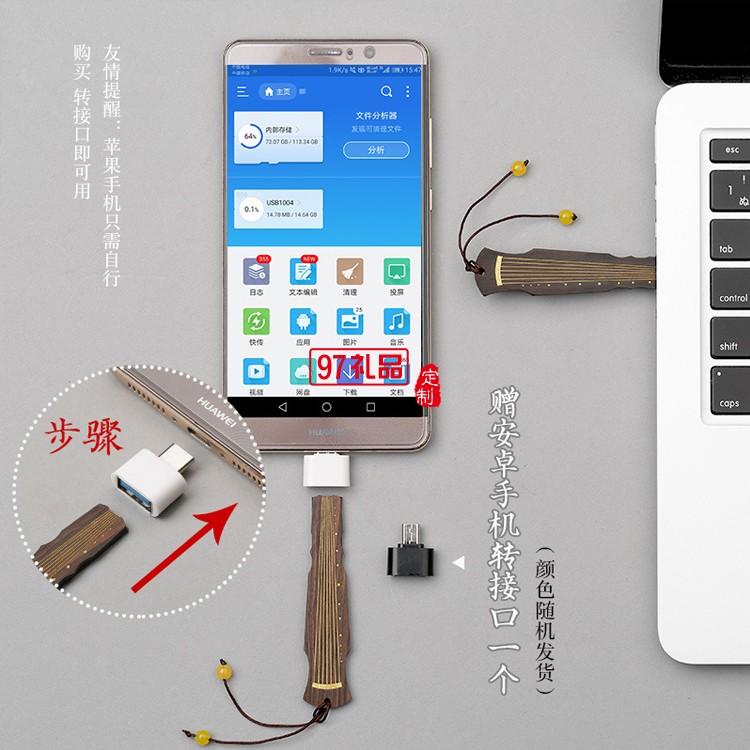 創(chuàng)意中國風古風紅木 古琴U盤 車載高速